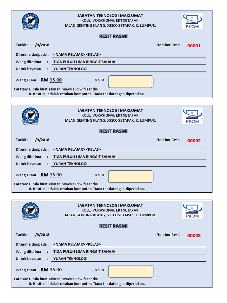 contoh resit rasmi