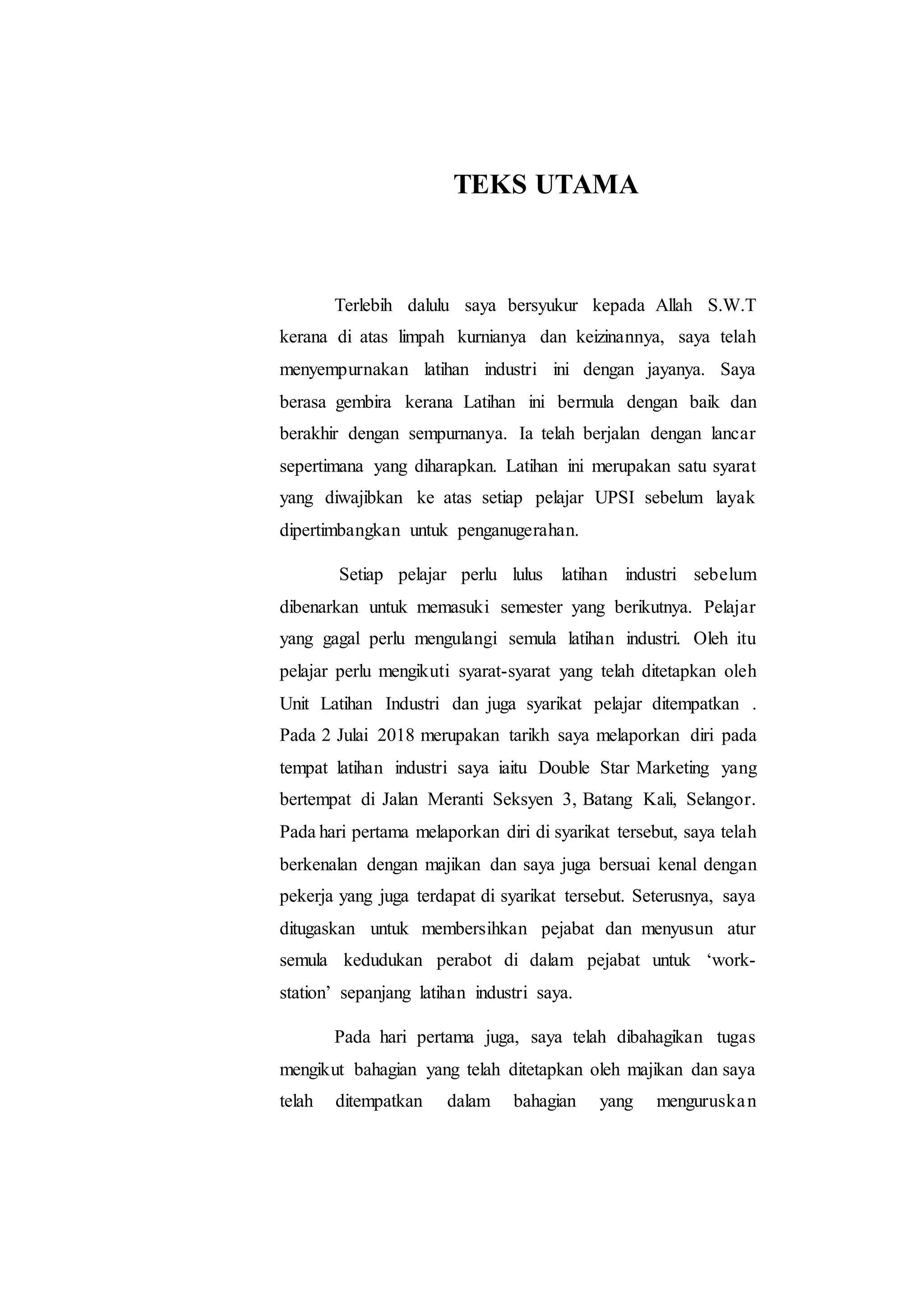 Contoh Laporan Latihan Industri Full. UPSI Pusat Latihan Mengajar dan Industri 35900 Tanjong Malim Perak Darul Ridzuan plmiupsiedumy 6015-4879 7210. Oleh itu pensyarah boleh menunjukkan.