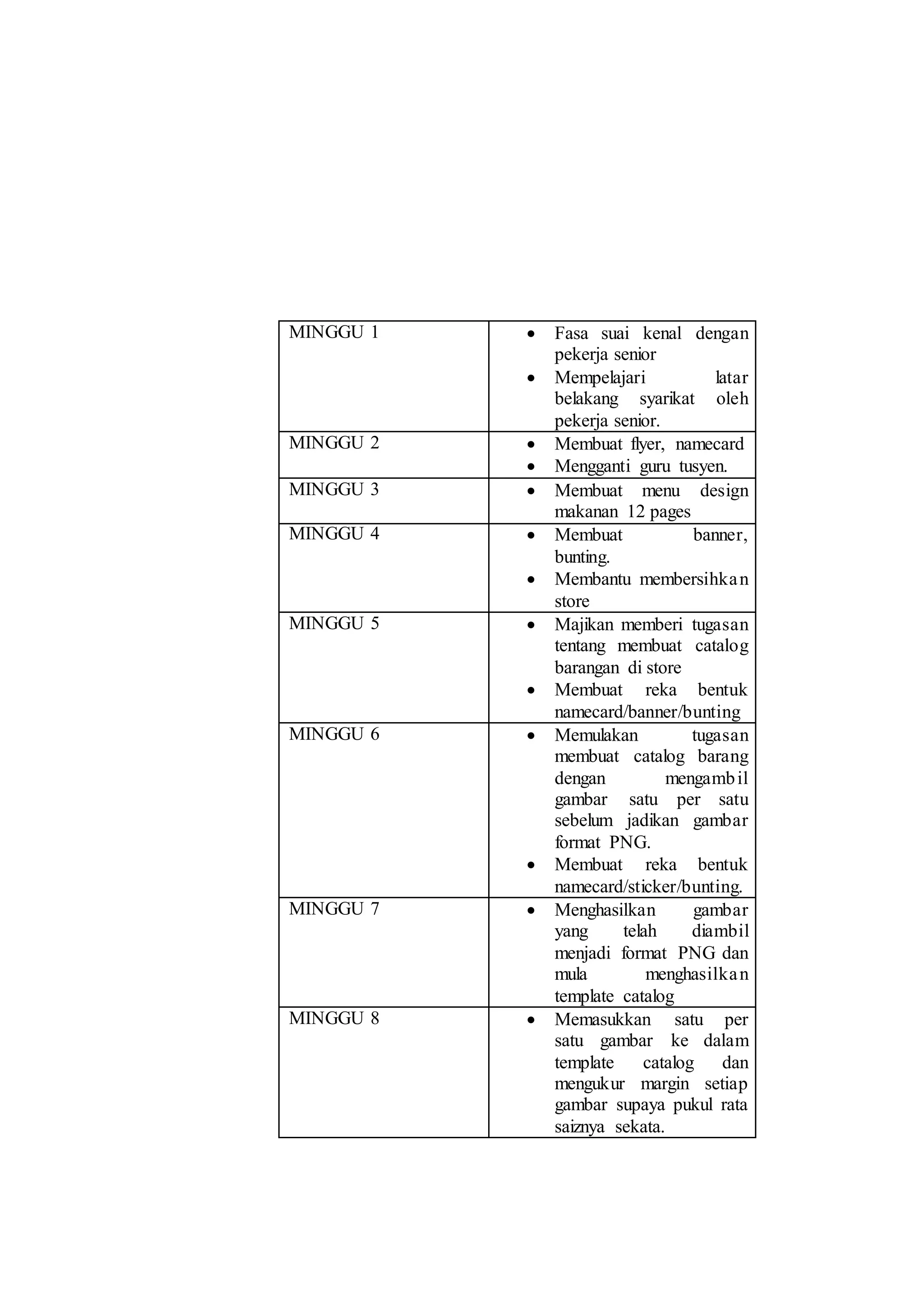 . Borang Pendaftaran Kursus Latihan Industri 20 2. Mingguan Contoh Report Latihan Industri. 92 Penulisan Laporan Akhir Latihan Industri 17 LAMPIRAN A.